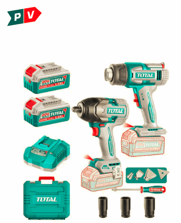 Kit Llave Impacto 850Nm + Pistola Calor 550 °C + Accesorios